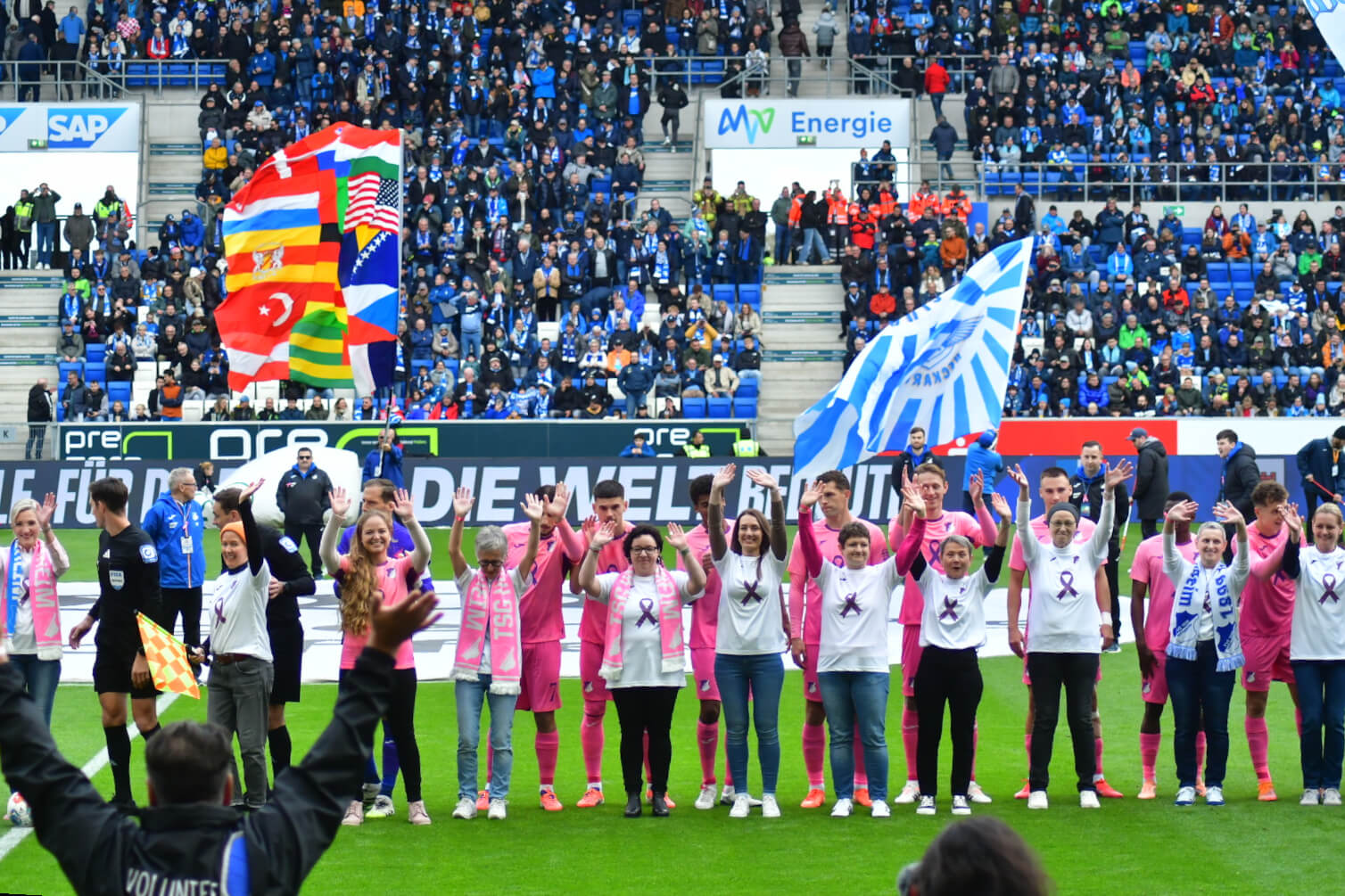 Nadine A. Michel: Der Moment beim Einlaufen war besonders – ein Gänsehaut-Moment! Unser ganzes Team ist emotional berührt. Fußball hat so eine enorme Strahlkraft. Wie die TSG hier diese Vorreiterfunktion in Deutschland übernimmt und uns so eine Bühne bietet, das ist ganz fantastisch! Dieses Zeichen der Solidarität für Patientinnen und auch für uns, die sich jeden Tag bemühen, die Erkrankung zu bekämpfen, das wird nachhaltig sein! Ganz herzlichen Dank!