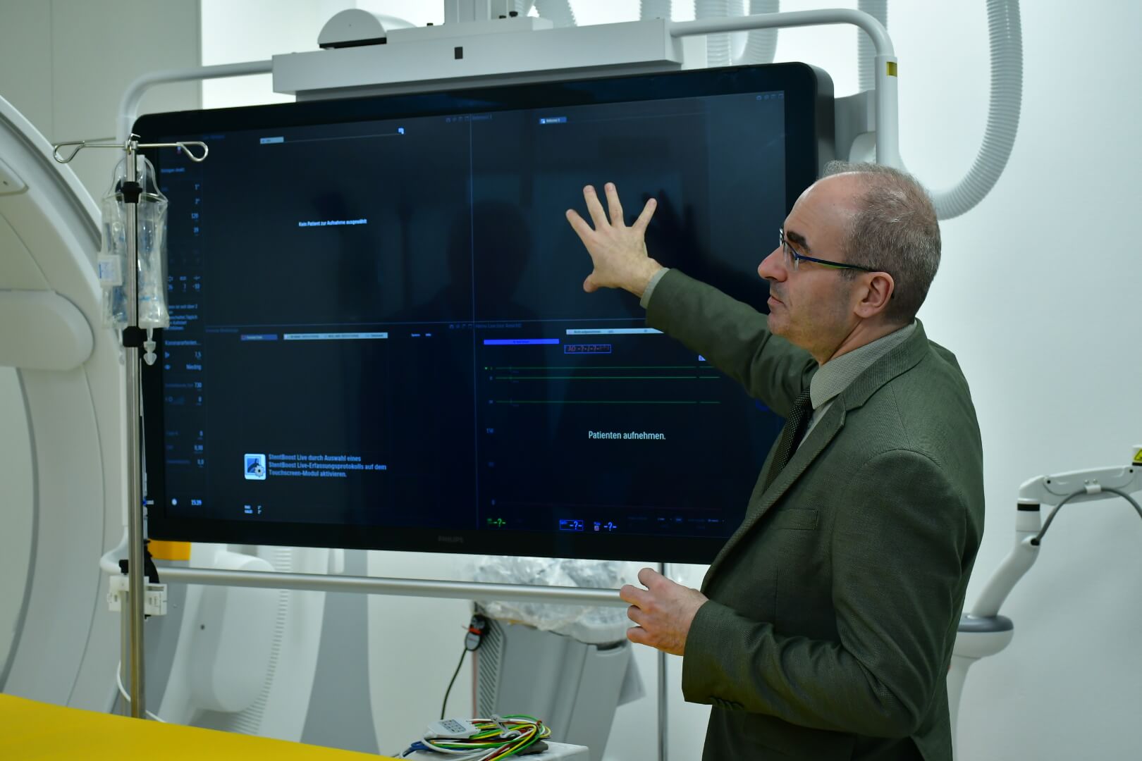 Prof. Korosoglou verweist auf die ganz wesentliche Bedeutung der Kardiologie: „Herzerkrankungen sind die häufigste Todesursache in Deutschland – noch vor Krebserkrankungen.“ Mit zwei Herzkatheterlaboren, einem ebenfalls von den Hector Stiftungen gespendeten Kardio-CT und dem entsprechenden Personal möchte er die Patientensicherheit und Gesundheitsversorgung in der Region noch weiter verbessern. Eine CT-Untersuchung gebe vorab Aufschluss darüber, ob ein Eingriff notwendig ist und wie stark Gefäße verkalkt seien. Somit ist eine bessere Planung von Eingriffen möglich und es könnten nicht notwendige Eingriffe vermieden werden.