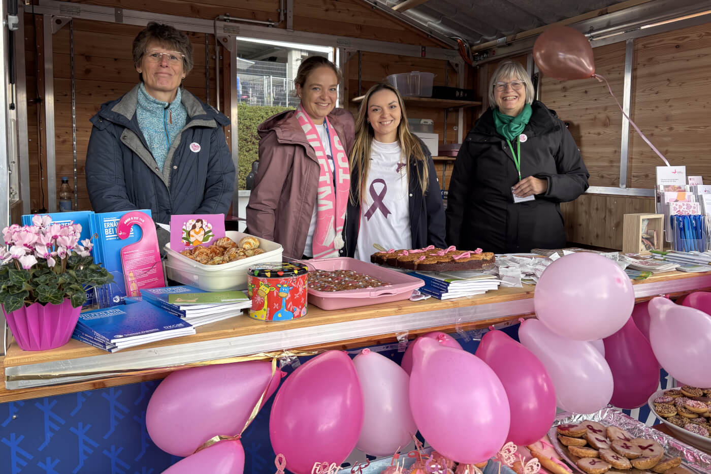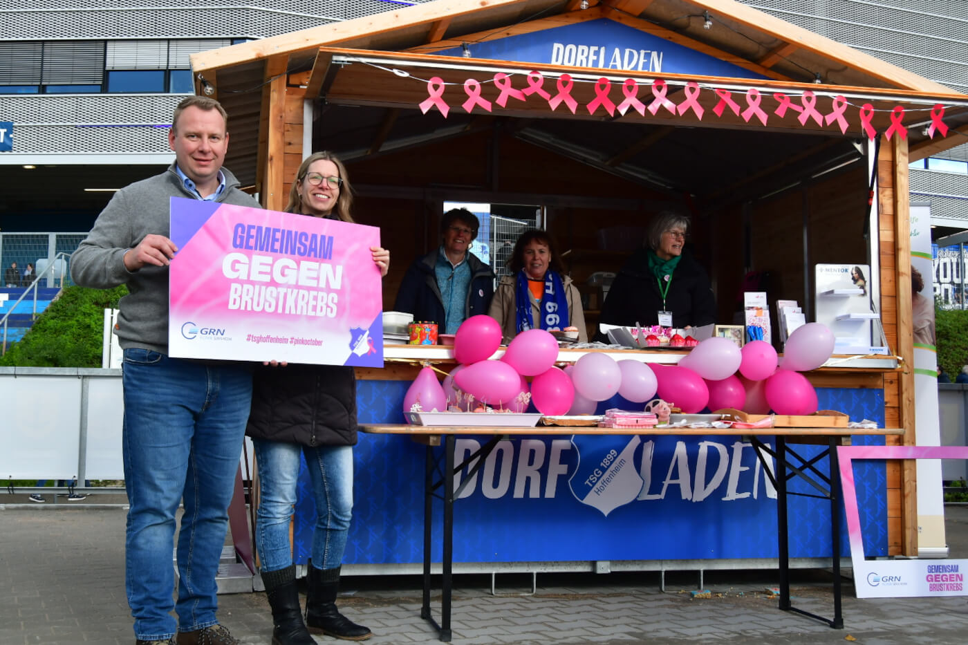 Rund um das Spiel bot ein vielfältiges Rahmenprogramm Gelegenheit, sich zu informieren: Auf dem Dorfplatz der PreZero Arena konnten sich am Infostand des Brustzentrums der GRN Klinik Sinsheim Interessierte über Vorsorge, Diagnose, Behandlungsmöglichkeiten und Selbsthilfe-Angebote informieren.