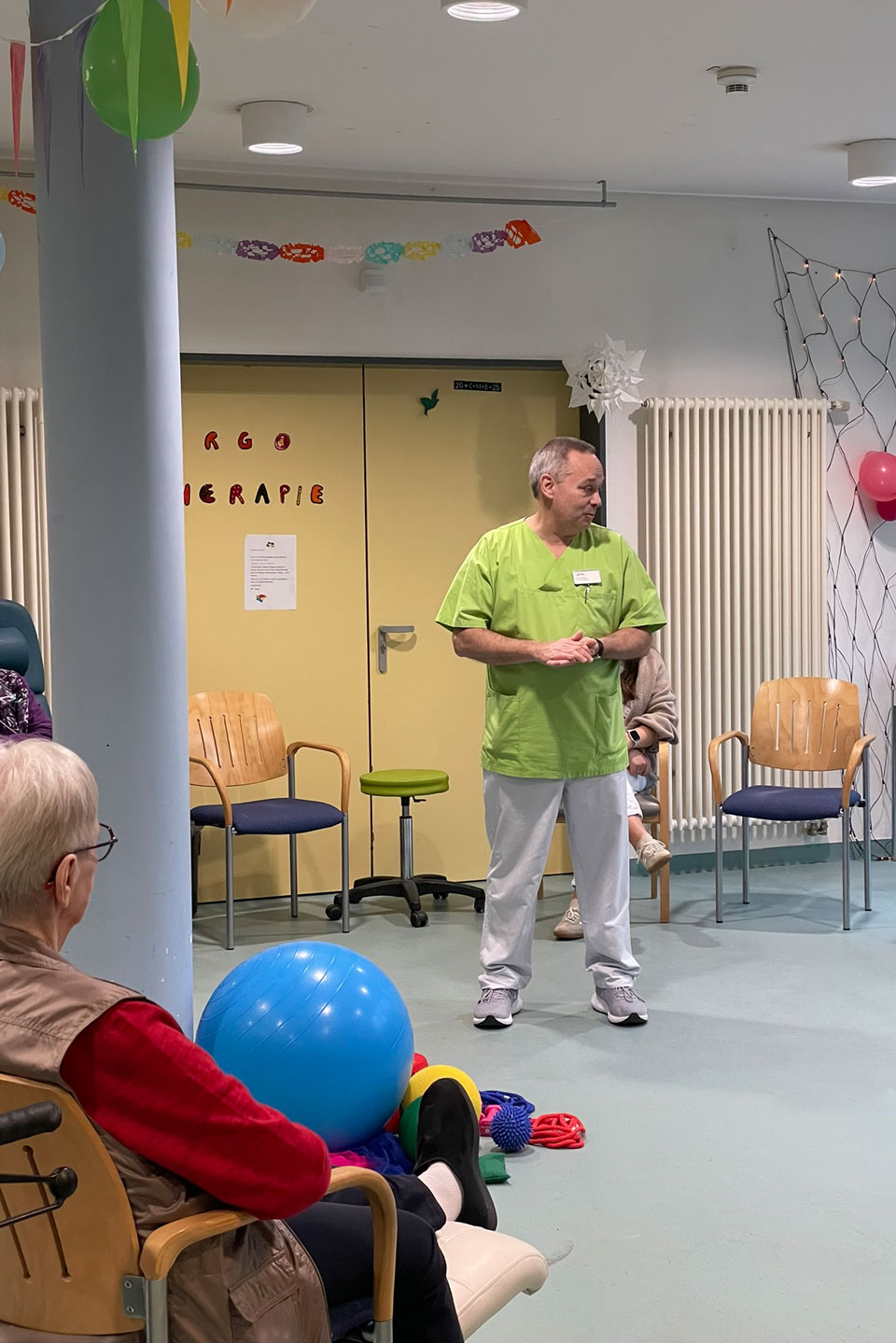 Ergänzt wurde das Programm durch weitere praxisnahe Stationen, etwa zum Messen von Vitalzeichen, zum Anlegen von Wundverbänden sowie zu Injektionen und Infusionen. Darüber hinaus erhielten die Schülerinnen und Schüler im Seniorenzentrum Schwetzingen Einblicke in den Alltag der Langzeitpflege. Anhand kleiner Denk- und Bewegungsübungen wurde vermittelt, wie Pflege dort neben medizinischer Versorgung auch Aktivierung, Aufmerksamkeit und soziale Nähe umfasst.