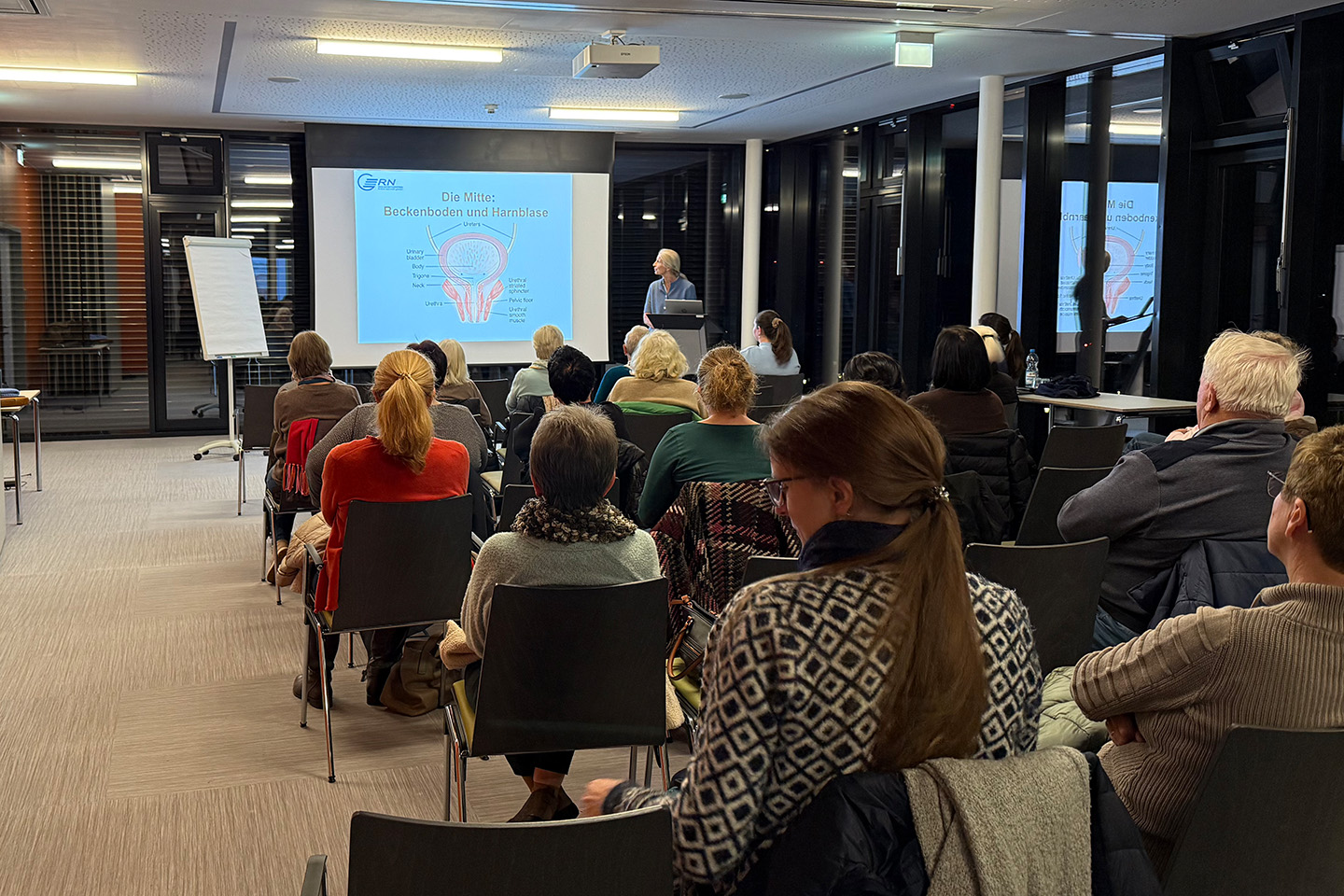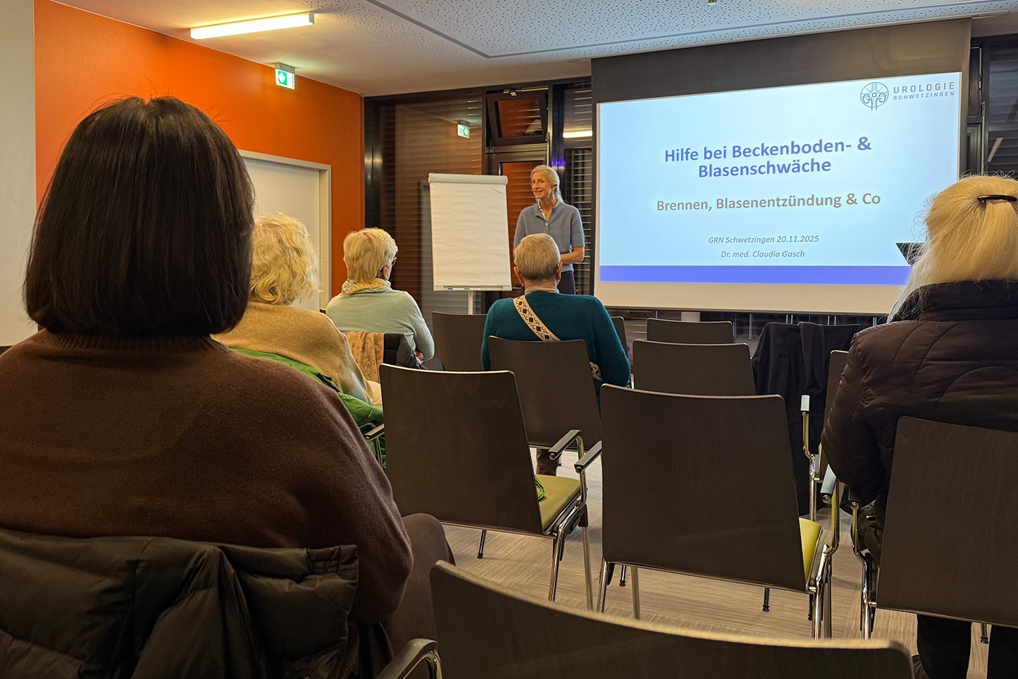 Mit großem Besucherinteresse fand am vergangenen Donnerstag, 20. November in der GRN-Klinik Schwetzingen eine Informationsveranstaltung zu Blasen- und Beckenbodenproblemen bei Frauen statt. Die Expertinnen Dr. Annette Maleika, Chefärztin für Gynäkologie und Geburtshilfe an der GRN-Klinik Schwetzingen, die Schwetzinger Urologin Dr. Claudia Gasch sowie Anna Müller, Physiotherapeutin vom Institut HerHealth in Mannheim, beleuchteten Ursachen, Diagnose- und Behandlungsmöglichkeiten sowie wirksame Präventionsstrategien.