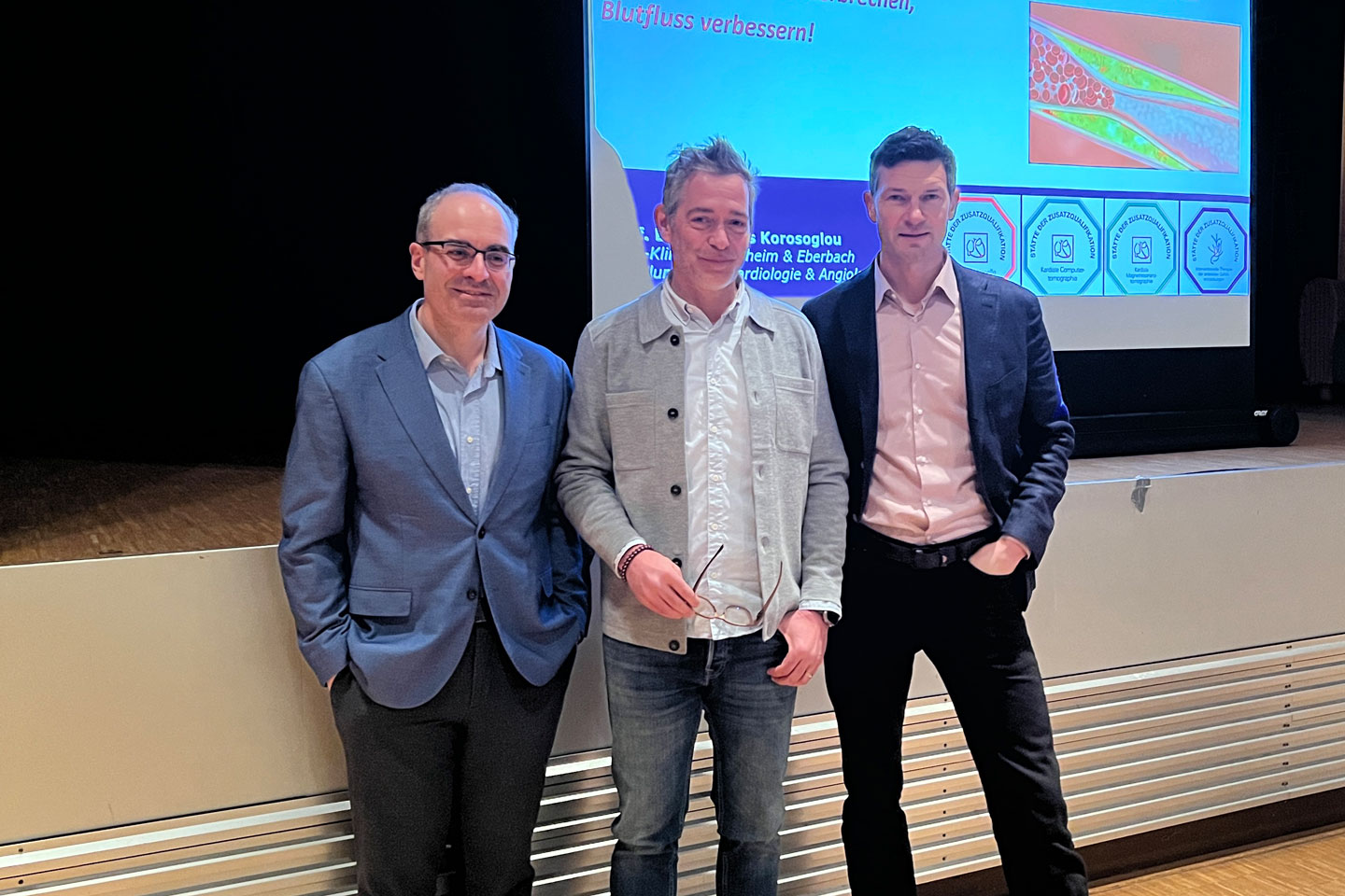 Als ausgewiesener Experte und Kommissionsleiter für endovaskuläre Therapie der peripheren arteriellen Verschlusskrankheit (pAVK) lag sein Schwerpunkt auf der chronischen Durchblutungsstörung der Beine: „Erste Anzeichen sind belastungsabhängige Beinschmerzen – die sogenannte ‚Schaufensterkrankheit‘. In fortgeschrittenen Stadien drohen Wundheilungsstörungen oder Amputationen. Dank moderner Verfahren lässt sich häufig die Durchblutung bis in den Fuß wiederherstellen – meist ohne große Operation und unter lokaler Betäubung.“ Prof. Korosoglou betonte die ganzheitliche Betrachtung des Gefäßpatienten und hob die enge Zusammenarbeit zwischen Kardiologie und Urologie hervor, da viele urologische Patientinnen und Patienten zugleich Herz-Kreislauf-Erkrankungen aufwiesen.