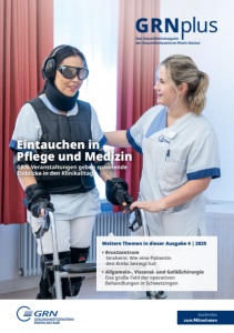 4 | GRNPLUS | GRN4Care Selbst erleben, wie spannend und abwechslungsreich die Arbeit in der Pflege ist – das ist das Ziel einer besonderen Kampagne des GRN-Verbunds in Schwetzingen. Wir wollen den Schülerinnen und Schülern zeigen, wie cool der Pflegeberuf sein kann“, sagt Jens Scheurich, Pflegedienstleiter in der GRN-Klinik Schwetzingen. Am 28., 29. und 30. Januar sind Jugendliche der 9. Klasse aus Real- und Gemeinschaftsschulen nach Schwetzingen eingeladen. In der GRN-Klinik sollen sie hautnah erfahren, was Pflege bedeutet. Und sich im besten Fall für diesen spannenden Berufsweg entscheiden. Was ist an den Aktionstagen geboten? Das von Pflegedienstleitung und Ausbildungskoordinatoren der GRN-Klinik und Praxisanleiterinnen des Seniorenzentrums Schwetzingen aufgestellte Programm sieht unter anderem Stationen wie das Messen von Vitalwerten, das eigenständige Verabreichen von Injektionen an Modellen, Richten von Infusionen, Deeskalationstrainings, Verbandswechsel und einen Rollator-Hindernis-Parcours vor. In einem Escape-Room können die Teilnehmenden spielerisch und gemeinsam im Team Rätsel aus dem Bereich der Pflege lösen. Getreu dem Motto der Aktionstage: Pflege ist mehr als ein Beruf. Sie ist Teamgeist, Verantwortung und Herz. „Wir möchten damit zeigen, wie vielfältig und spannend Pflege ist“, sagt Jens Scheurich. Pflegefachkräfte müssten in der Klinik kritische Situationen schnell erfassen, erkennen und zum Teil auch lebensrettende Maßnahmen einleiten. In der Akutpflege sei Teamarbeit und medizinisches Fachwissen gefragt, beides Mitten ins Geschehen: „GRN4Care – Pflege- Ausbildung starten!“