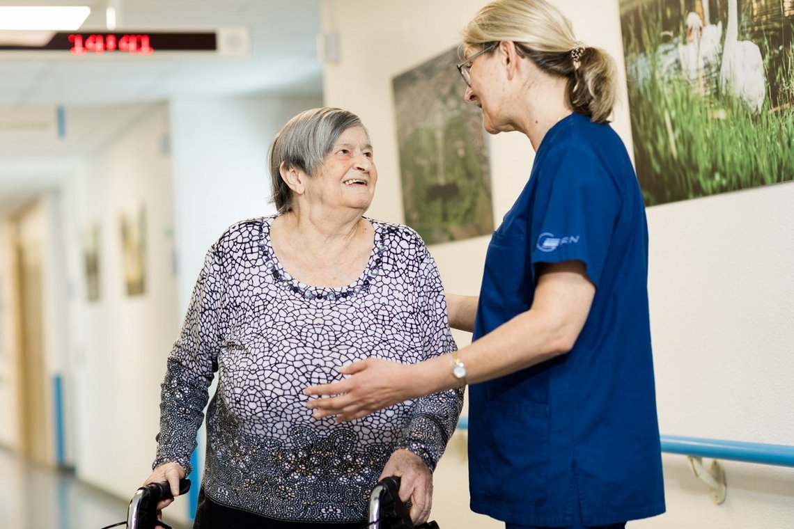 Selbstständigkeit erhalten, so gut es geht – das hat sich die Akutgeriatrie als eines ihrer Ziele gesteckt, damit sich die Lebenssituation älterer Patienten nach dem Krankenhausaufenthalt verbessert. Außerdem werden die Patienten ganzheitlich behandelt bei akuten Erkrankungen oder Verletzungen. Vom ersten Tag an arbeitet das Team gemeinsam mit den Patienten daran, Muskel- und Knochenabbau zu stoppen und somit Alltagskompetenz und Mobilität zu erhalten. Zeitgleich zur medizinischen Behandlung wird im Rahmen einer geriatrischen Frührehabilitation frühzeitig mit aktivierender Pflege, Ergo- und Physiotherapie sowie Logopädie begonnen.
